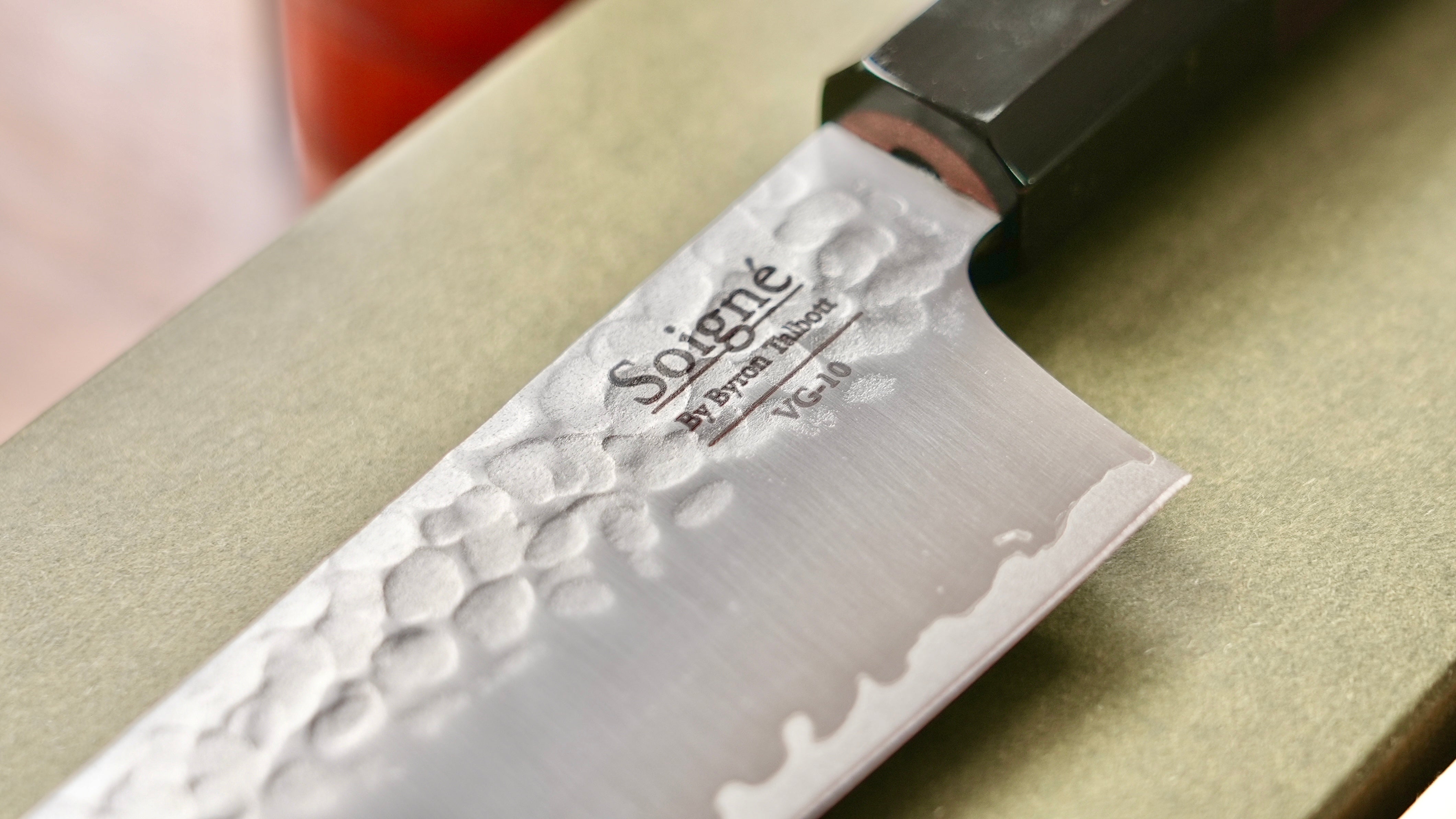 Cutlery blades are made with a variety of steels, and VG-10 is by far the best overall choice of steel to work with in most kitchen environments, in my experience. It's an incredible blend of excellent edge retention, durability, corrosion resistance, and easy maintenance—perfect for pros and home cooks alike.